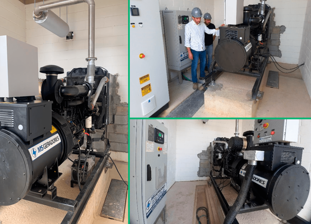 Montagem, instalação elétrica, configuração e comissionamento de geradores a diesel com tanque de combustível remoto.