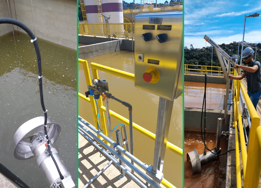 Montagem, instalação, startup, comissionamento e operação de misturadores submersíveis para ETE’s e ETA’s.
