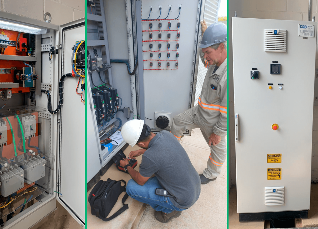 Fornecimento de painéis elétricos padrão CSB Automação Industrial, Instalação, confecção de infra estruturas elétricas, montagem e interligações, configuração, automação de equipamentos, startup e comissionamento.